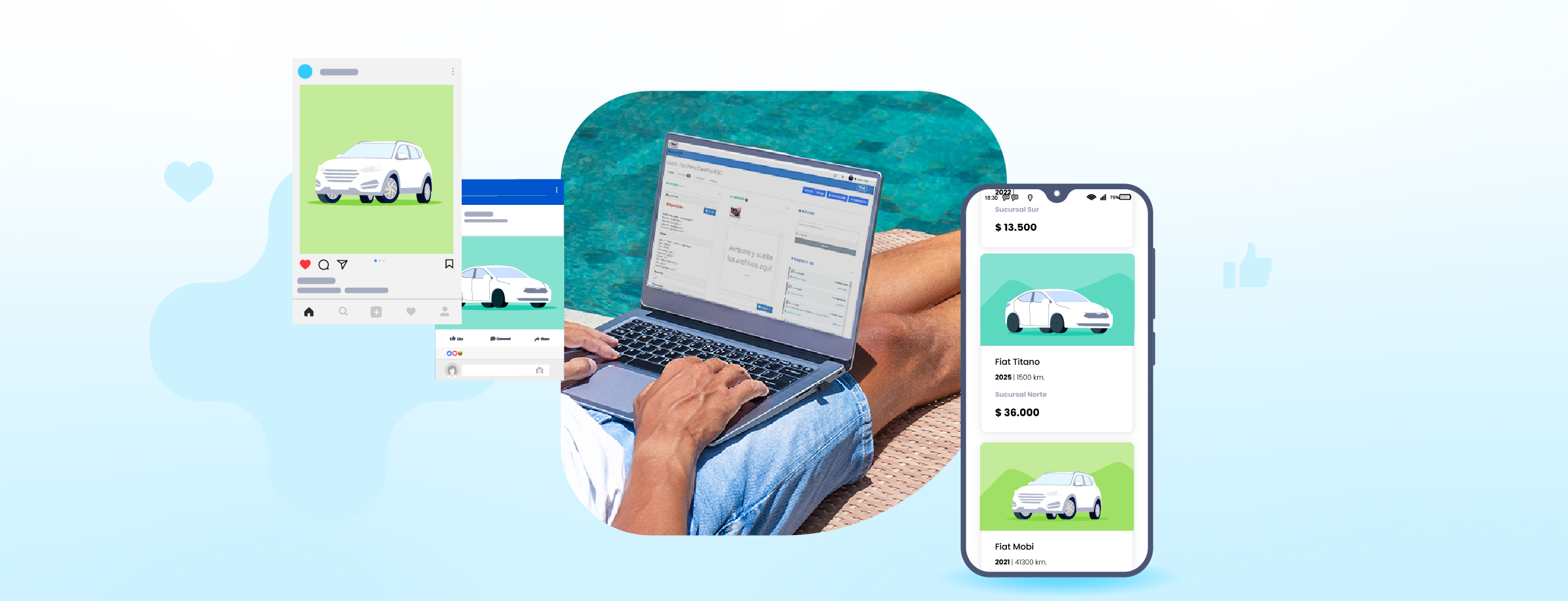 - Visibilidade digital: Publique seu estoque nas redes sociais e crie formulários personalizados para captar prospects online.